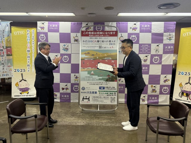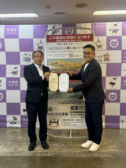 お知らせ 2025.09.26 大津市 国スポ・障スポ大会局 様 感謝状贈呈式(滋賀県大津市) 現在、滋賀県下で開催中の国スポ・障スポの大津市開催に弊社が貢献したとして、大津市実行委員会様より感謝状をいただきました。 圀松大津市副市長(左)と弊社代表 和田(右)