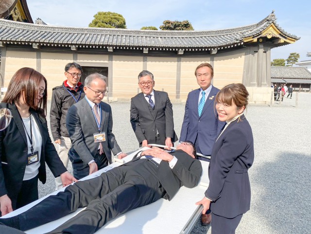 お知らせ 2026.02.05 世界遺産 元離宮二条城 様にタンカん板を寄贈 立春を過ぎた2月5日、京都を代表する世界遺産 元離宮二条城 様に㈱クラウドナインより「タンカん板」2台を寄贈させていただきました。年間を通じて国内外から多くの観光客が訪れる元離宮二条城。今回の寄贈を通じて、自然災害の多い日本ならではの“防災意識の高さ”と“人がひ人を助ける仕組み”を世界に発信できればと願います。